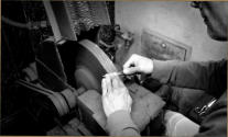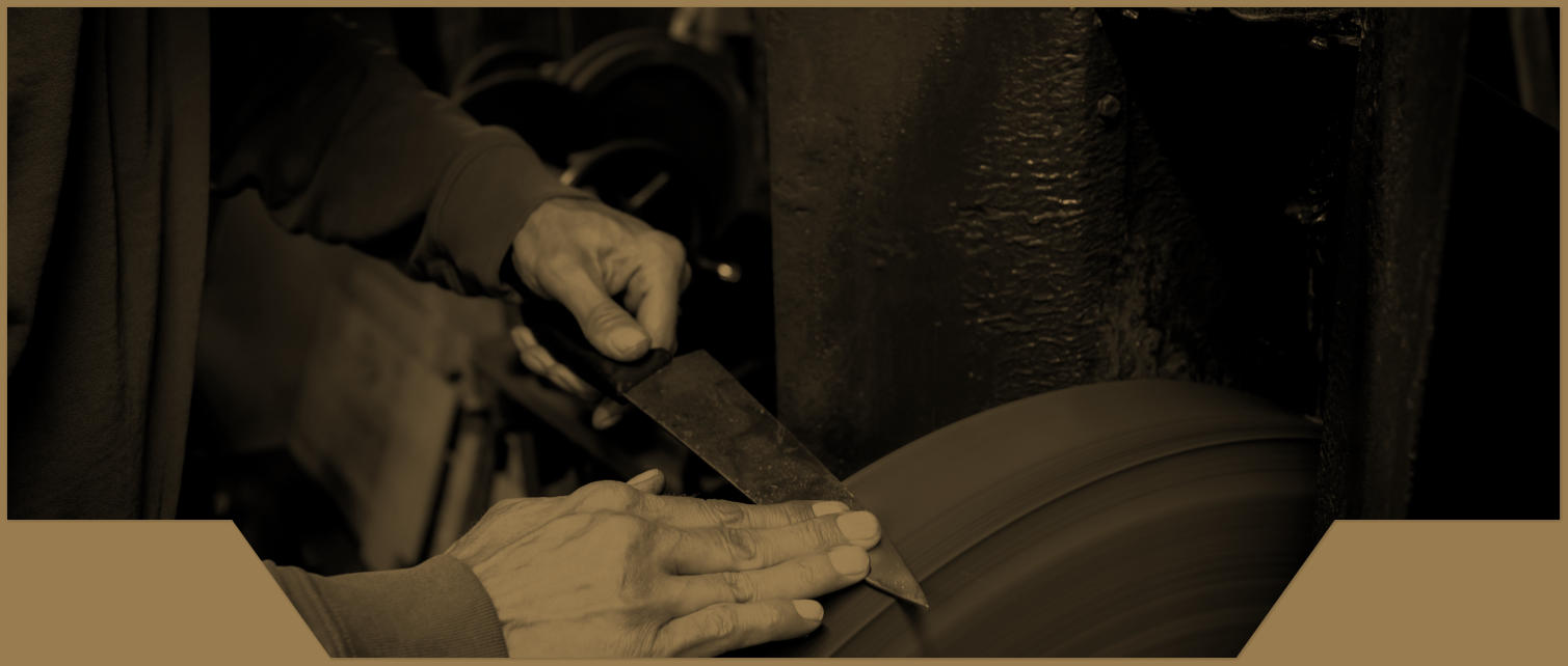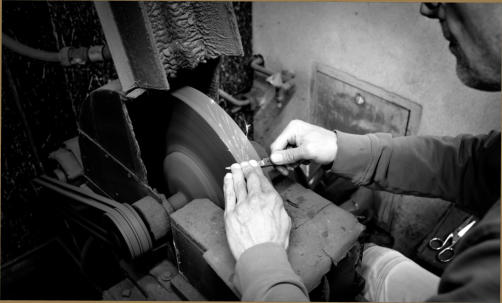 Ausgestattet mit allen erforderlichen Schleif- und Poliermaschinen,die man in einer Messerschmiedewerkstatt benötigt um das Handwerk des Messerschmieds (Schneidwerzeugmechaniker) fachmännisch und in Handarbeit auszuüben .