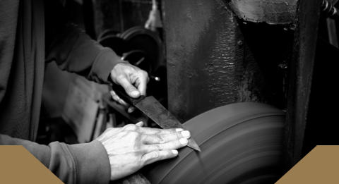 Ausgestattet mit allen erforderlichen Schleif- und Poliermaschinen,die man in einer Messerschmiedewerkstatt benötigt um das Handwerk des Messerschmieds (Schneidwerzeugmechaniker) fachmännisch und in Handarbeit auszuüben .